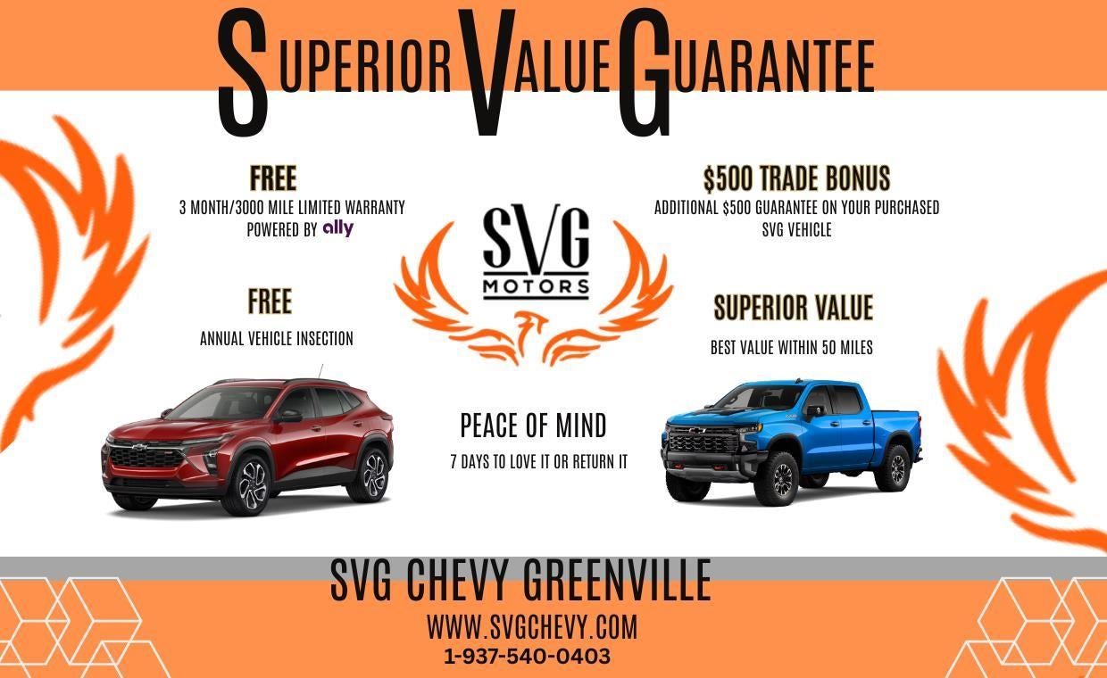 At SVG Chevrolet of Greenville, we're here to Serve you! Our staff is 100% dedicated to customer satisfaction and we understand that you need clear, transparent information throughout the car buying process. With our live market pricing philosophy, we offer the right cars at the right price, and the transparency to back it up!